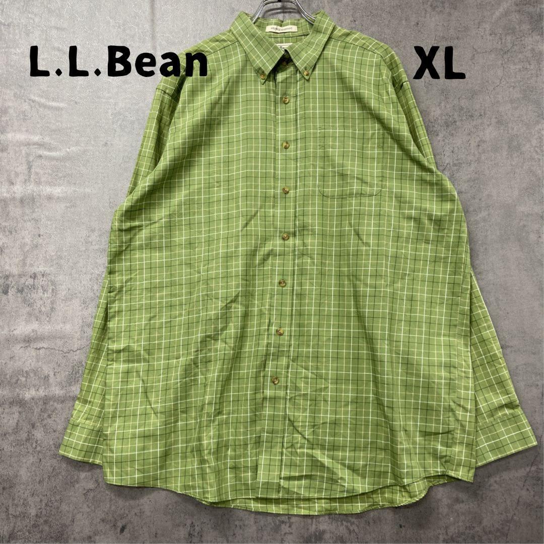 - エルエルビーン 長袖シャツ グリーン チェック柄 メンズLサイズ【6064】