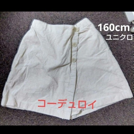 - ユニクロキッズコーデュロイキュロットスカート160cm クリーム色 ショートパンツ