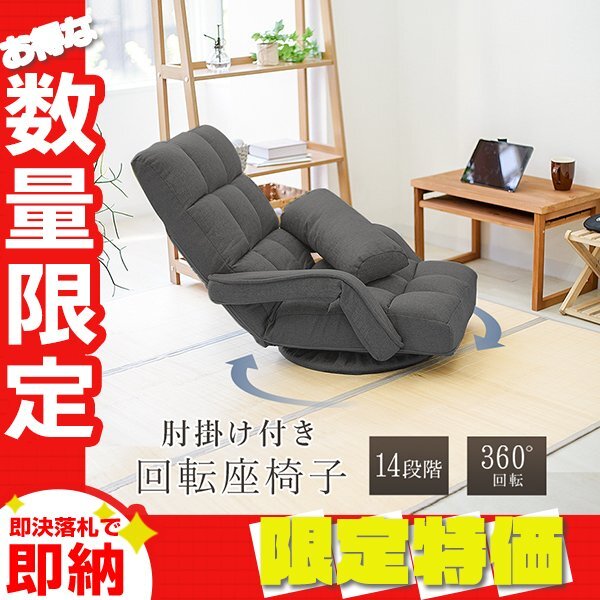 > 【限定セール】座椅子 おしゃれ 肘掛付き 回転式 ハイバック リクライニング 回転座椅子 ソファーベッド 日本製ギア 座いす 腰痛 暗灰色