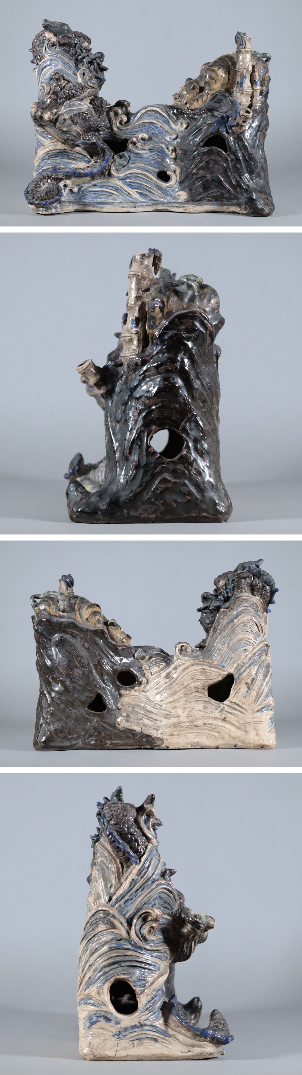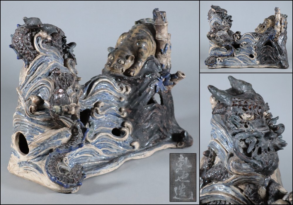 - 江戸時代 後期 / 陶工 三浦乾也 天禄堂 / 色絵 彩色 龍 竜 虎 寅 龍虎図 置物 / 古陶磁製 陶人形 床置 尾形乾山 骨董品 古美術品 / 幅40cm