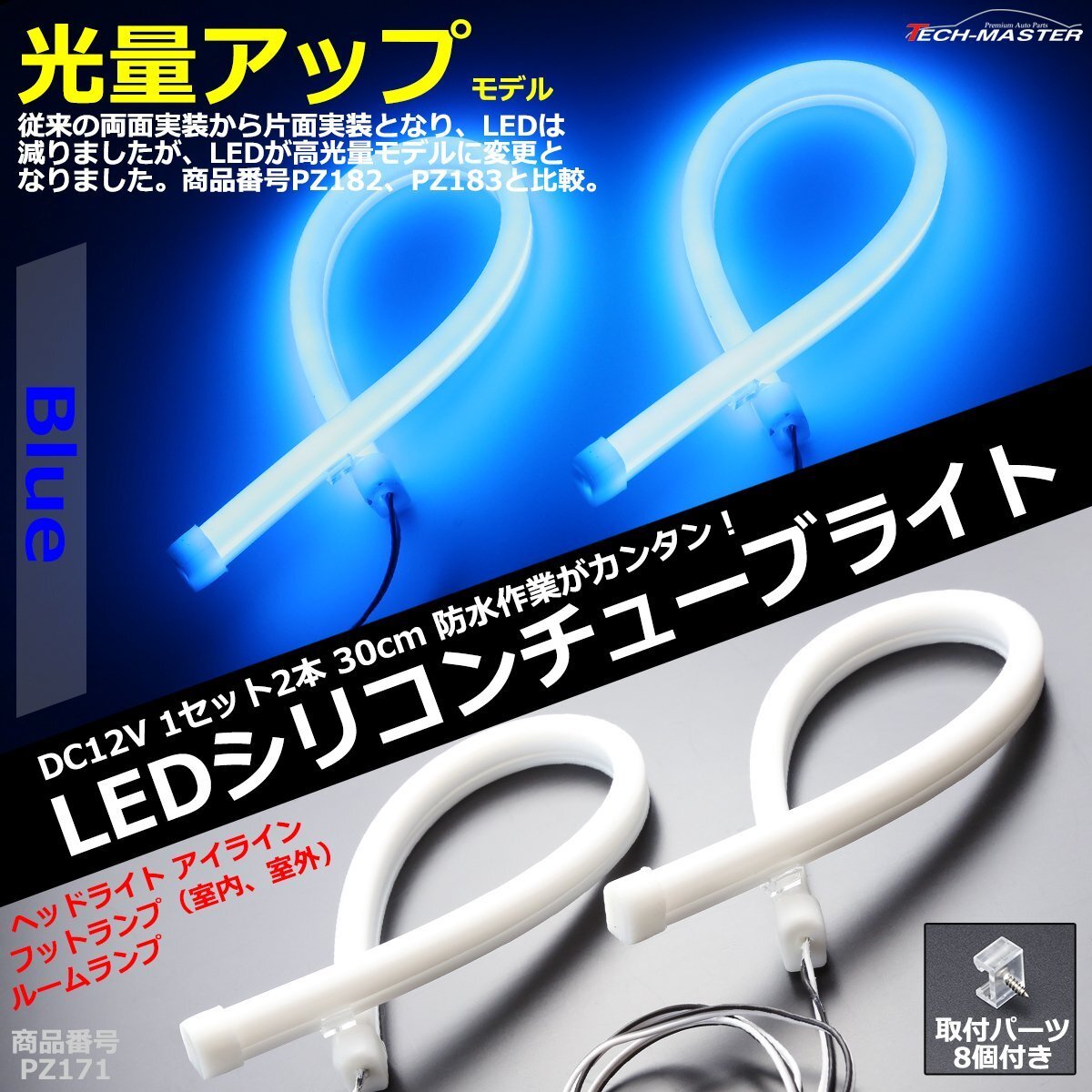 - ヘッドライト アイライン LEDシリコンチューブ 30cm ブルー DC12V 汎用 PZ171
