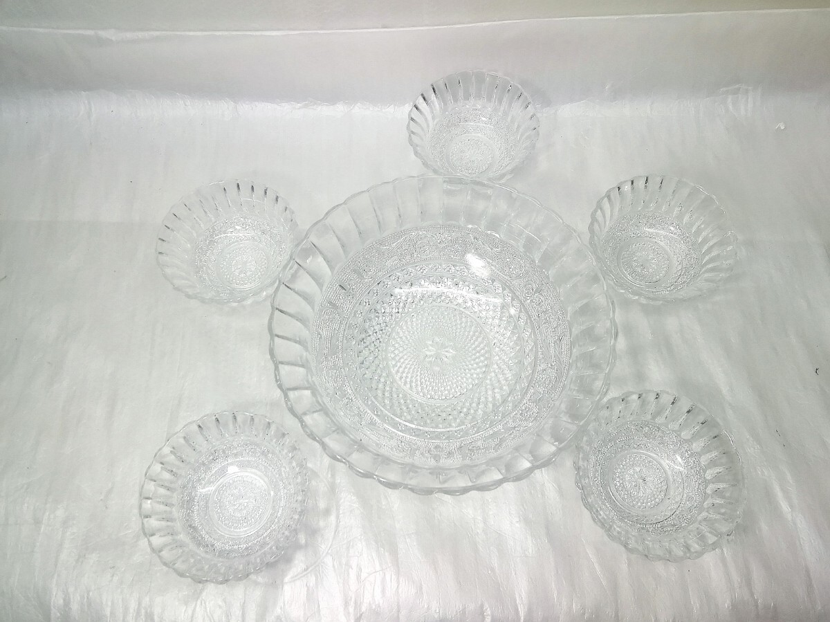> ガラスボウル 食器 大鉢・小鉢 5客揃 クリスタル 切子細工 サラダボウル サラダ ガラス鉢 フルーツ皿 盛鉢 アンティーク食器 ⑤