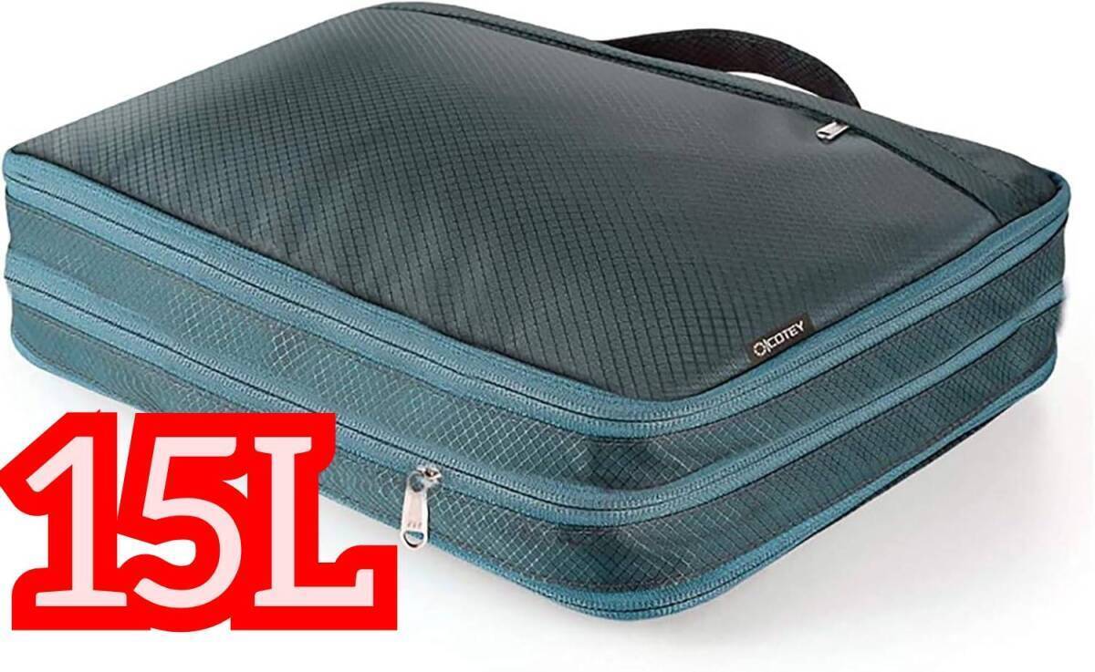 - 送料無料 旅行圧縮バッグ トラベルポーチ 衣類収納 ファスナー 圧縮 衣類 スペース50%節約 乾湿分離 軽量 簡単圧縮 15L 出張 旅行用 青