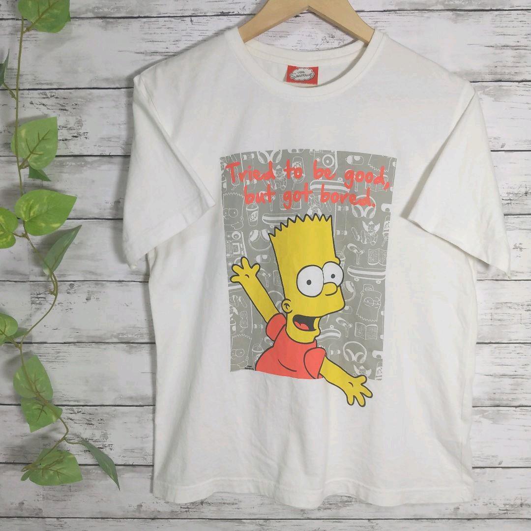 - ザ・シンプソンズ Tシャツ Mサイズ 白色 キャラロゴ ボックスロゴ