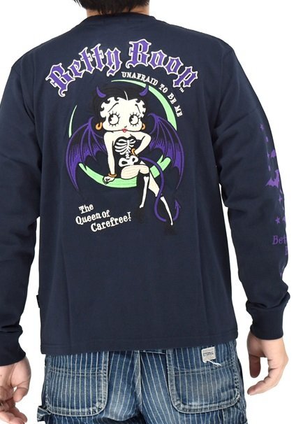 > BETTY×ネバーマインド 長袖Tシャツ◆NEVER MIND ダークネイビー Lサイズ BBN-2509 ベティーちゃん 刺繍 ロングTシャツ バイカー