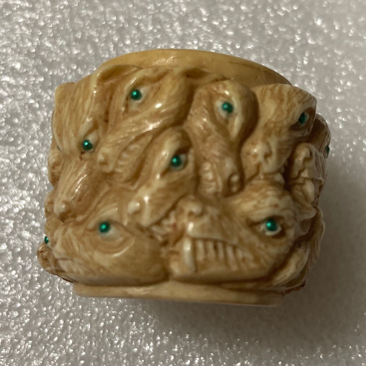 - 天然素材 オオカミ彫刻 根付 置物 提げ物 指輪