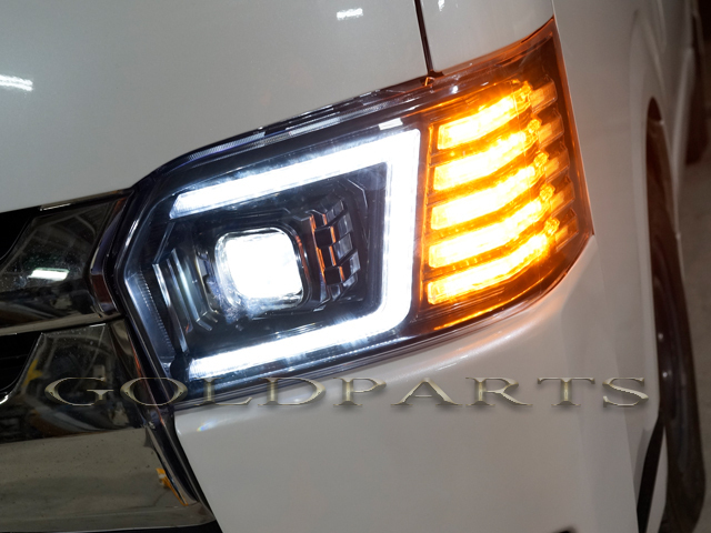 > ロービームが明るい【COPLUS製】200系 ハイエース/レジアスエース 4型~現行 プラチナLEDヘッドライト 流れるウインカー