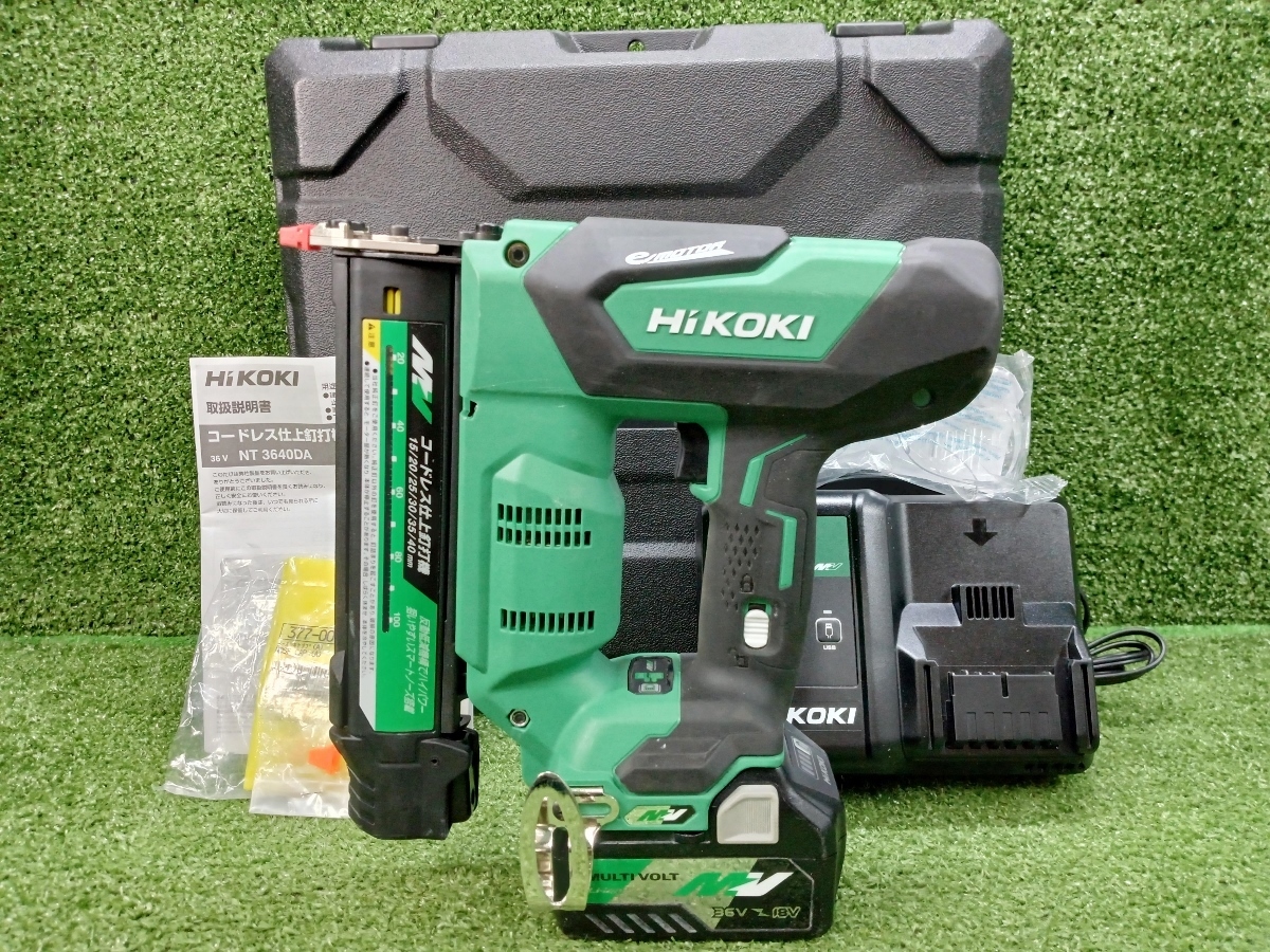 > 中古 HiKOKI ハイコーキ 旧日立工機 マルチボルト 36V コードレス 仕上釘打機 バッテリー 充電器 付 NT3640DA(XP)