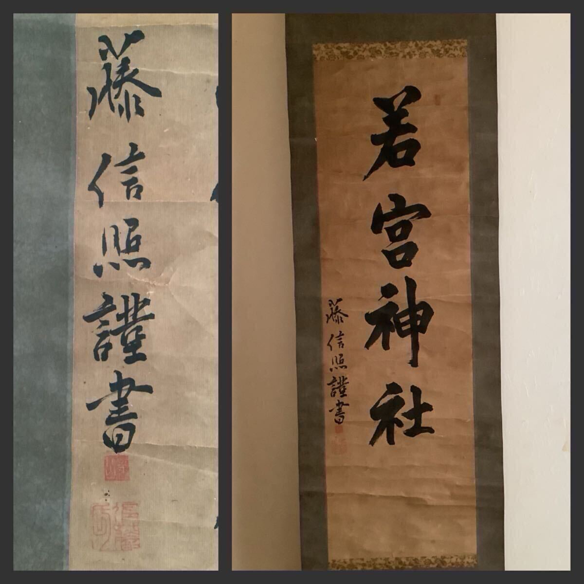 - 【模写】掛軸Oct727[藤信照 若宮神社御神號]紙本 書いたもの/神仏画 神道神教 一行書 古書