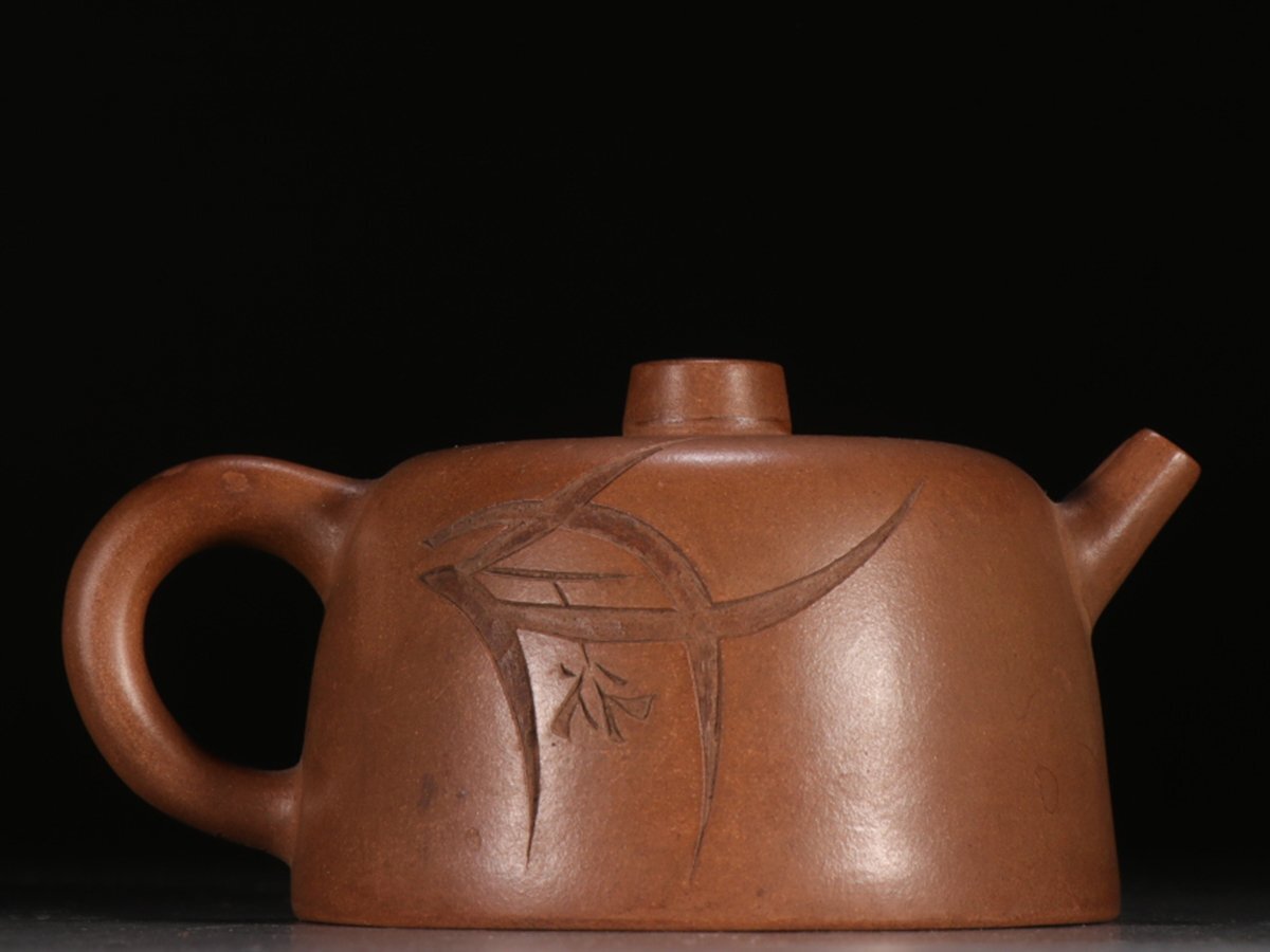 - 【安】急須 曼陀華館底款 蘭花紋茶壺 宜興紫砂 常滑 朱泥急須 煎茶道具 茶壷 古董品 時代物 263