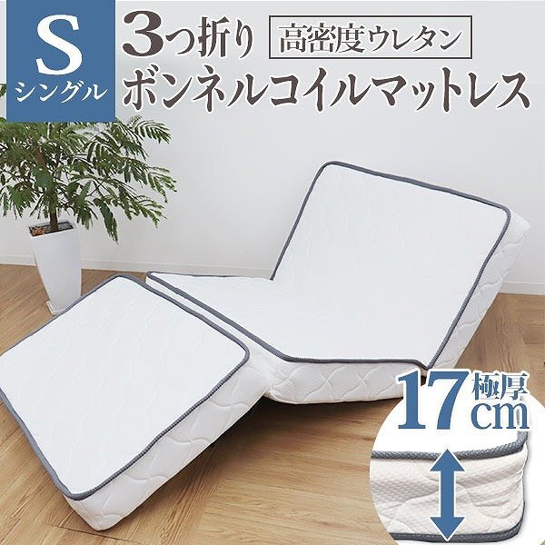 > 【シングル】高密度ボンネルコイル マットレス 厚さ17cm 三つ折り 硬め ボンネルコイルマットレス 通気性 スプリング マット 新生活