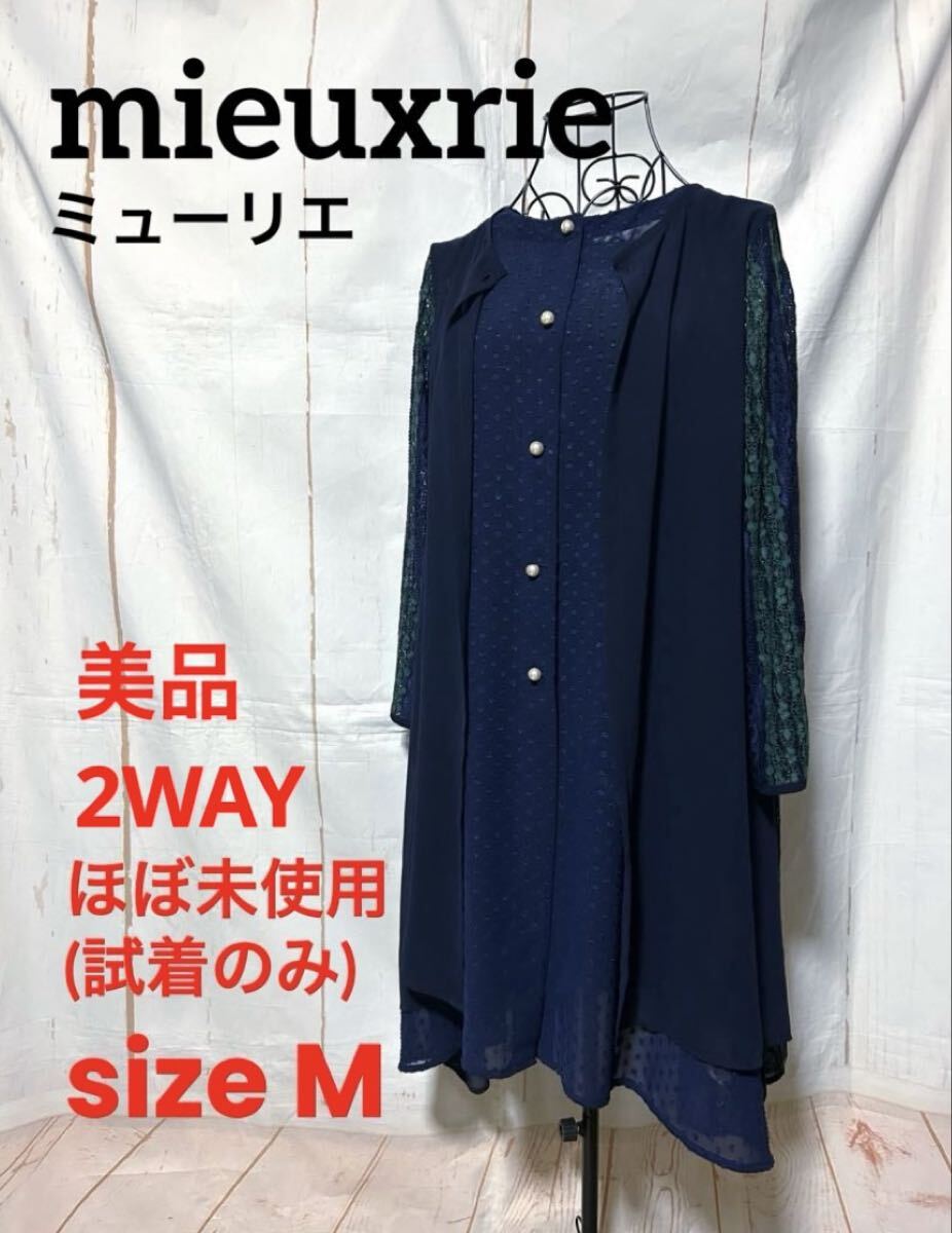 > mieuxrie ミューリエ シフォン 2ウェイ レース ドット柄 ロング カーディガン 上着 羽織り 七分丈 レース(試着のみ、美品)サイズM