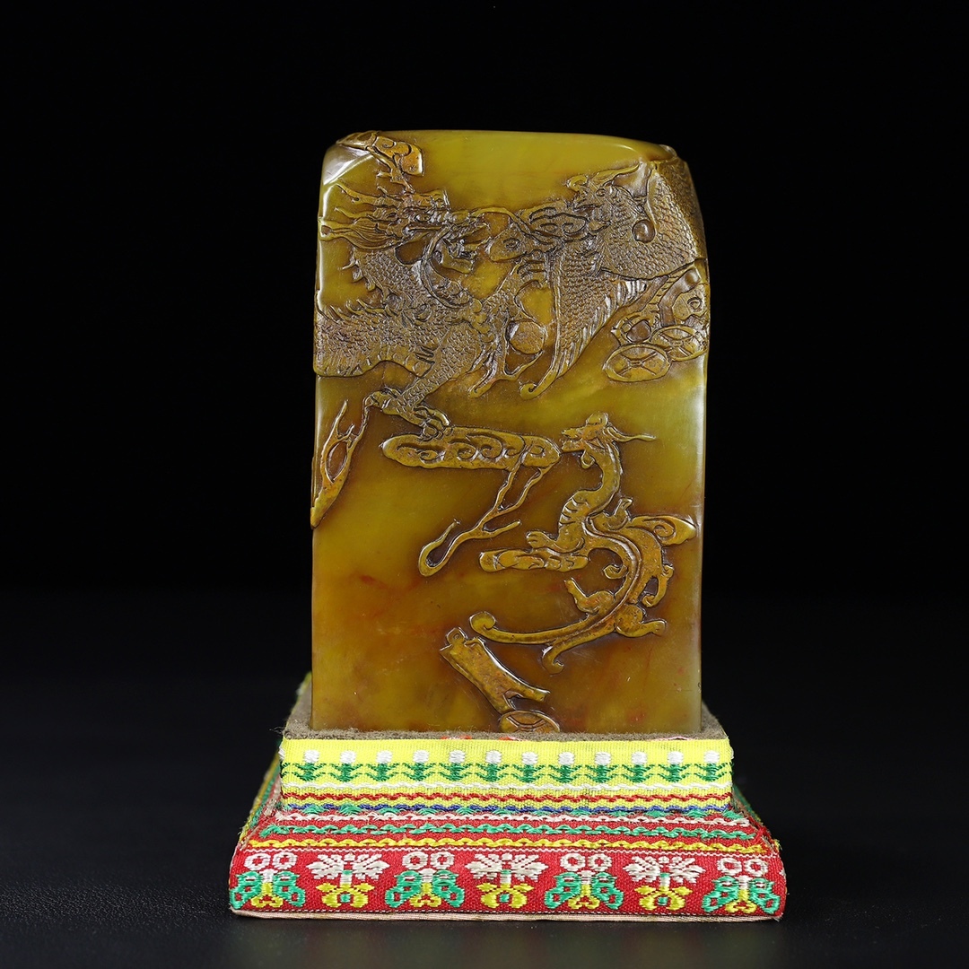 - 旧蔵 【清代篆刻家 陳豫鐘 號:秋堂】寿山石 田黄彫刻 龍鳳呈祥 印鑑 置物 天然石 手彫 篆刻 古印材 極細工 中国古玩 骨董品 古美味 210