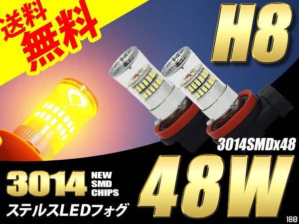 - H8 LED 48W フォグランプ / フォグライト オレンジ系 黄 バルブ 後付け ポン付 簡単 美光 国内 点灯確認後出荷 ネコポス* 送料無料