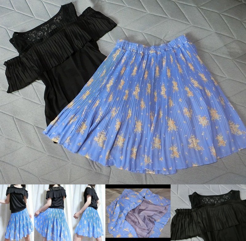 - f61★大きいサイズ 可愛いセット★肩だしレースカットソー&お花柄フレア