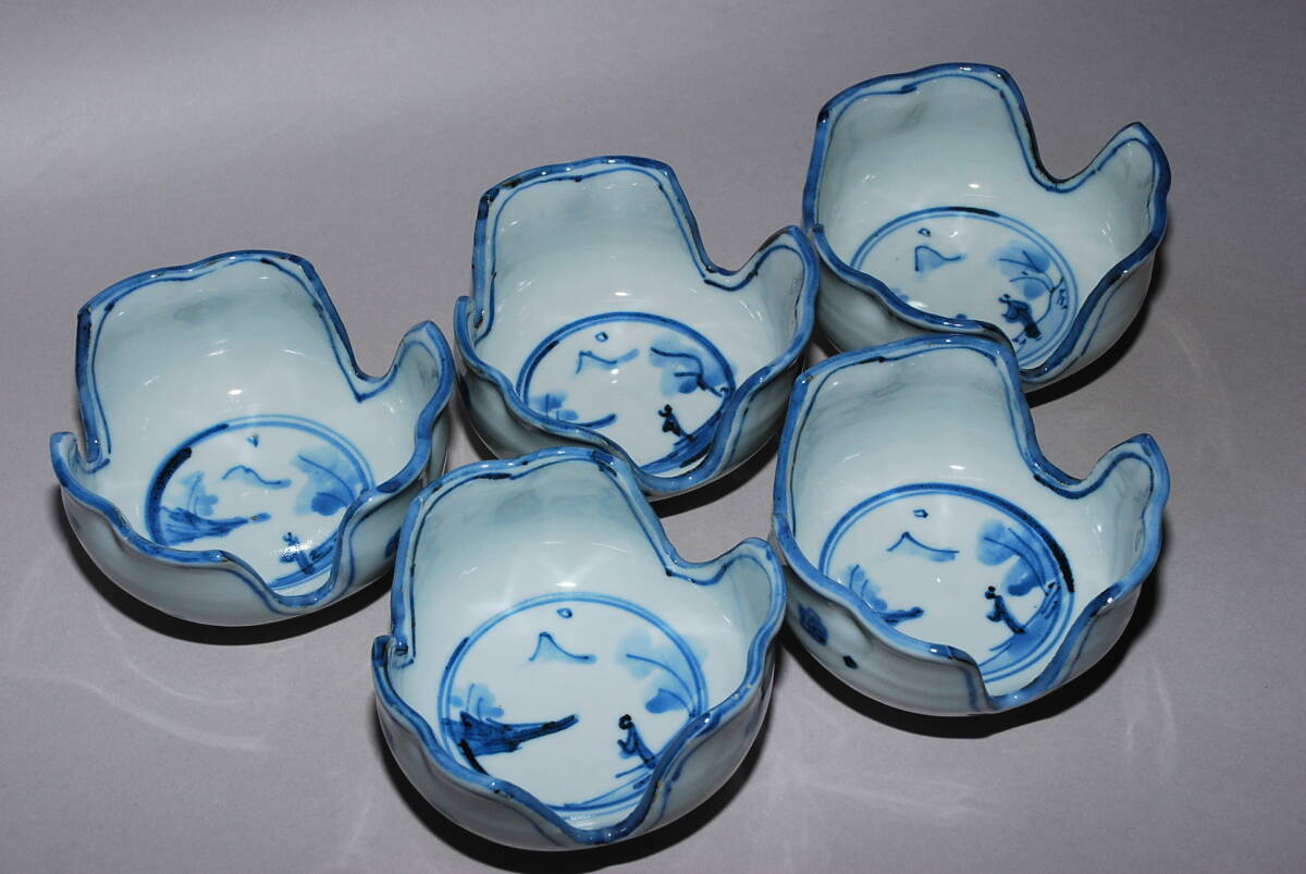 - 九谷 須田菁華 造 割山椒向付 5客 染付 山水文 箱なし 懐石