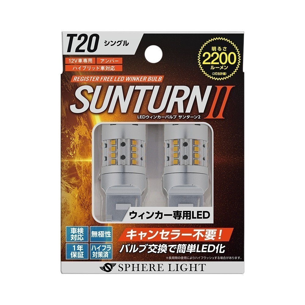 > スフィアライト ウインカー専用LED SUNTURN II T20シングル 2200lm サンターン2 LED ウィンカー ハイフラ防止対策済 1年保証 SUNT20S