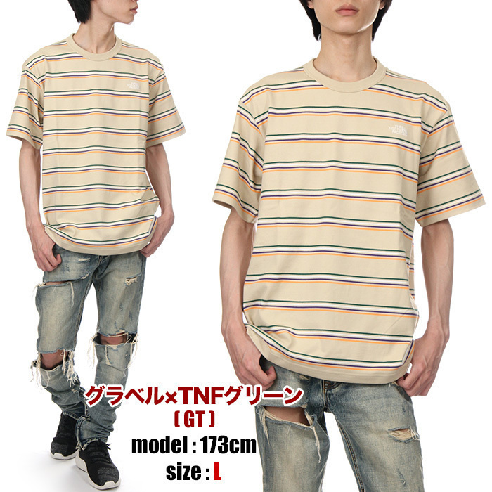 - 【Mサイズ:グラベルxTNFグリーン】【新品】ノースフェイス ボーダー Tシャツ THE NORTH FACE 半袖Tシャツ ロゴ ブランド NT32455