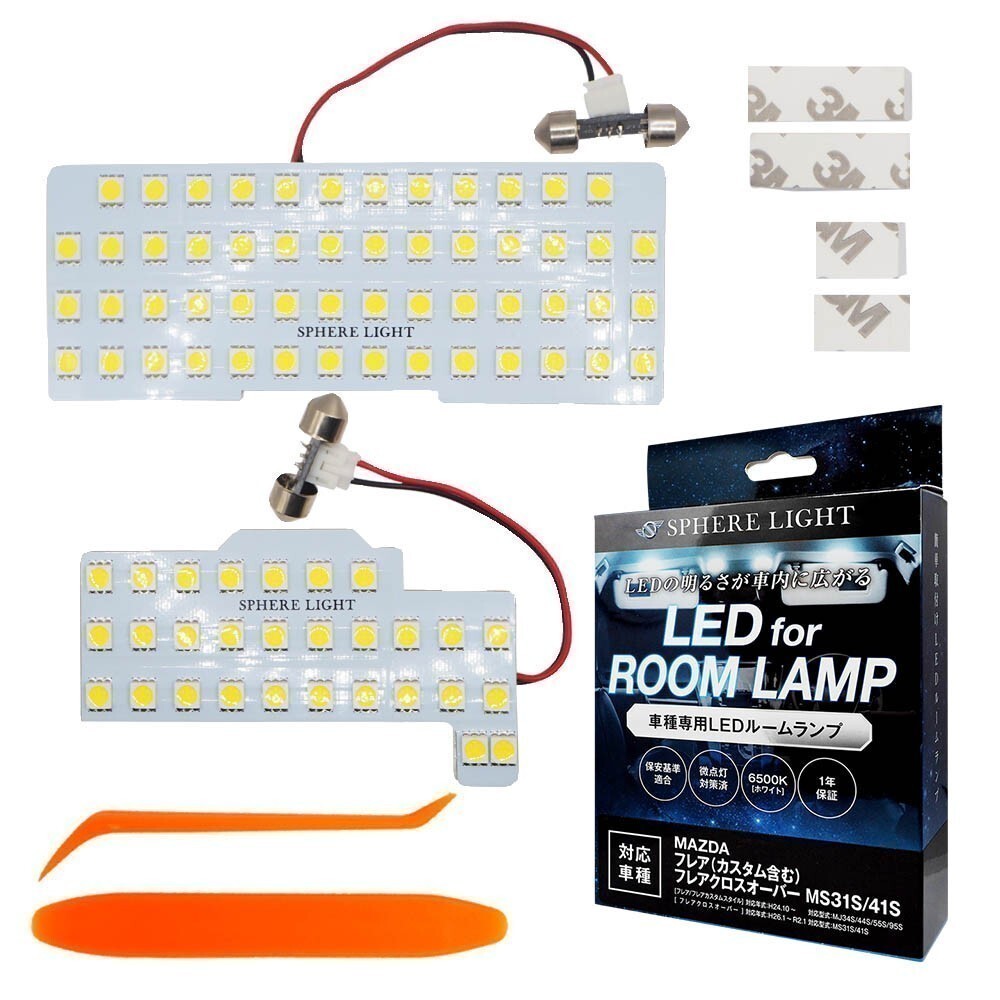 - スフィアライト フレアカスタム フレアクロスオーバー MS31S MS41S LED ルームランプ 室内灯 6000K 爆光 取付簡単 1年保証 SLRM-44