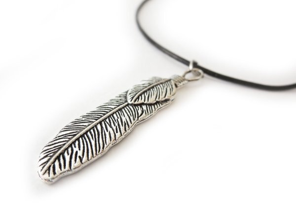 - 革紐ネックレス フェザーチャーム付き 長さ約45cm(40cm+5cm) LNG12