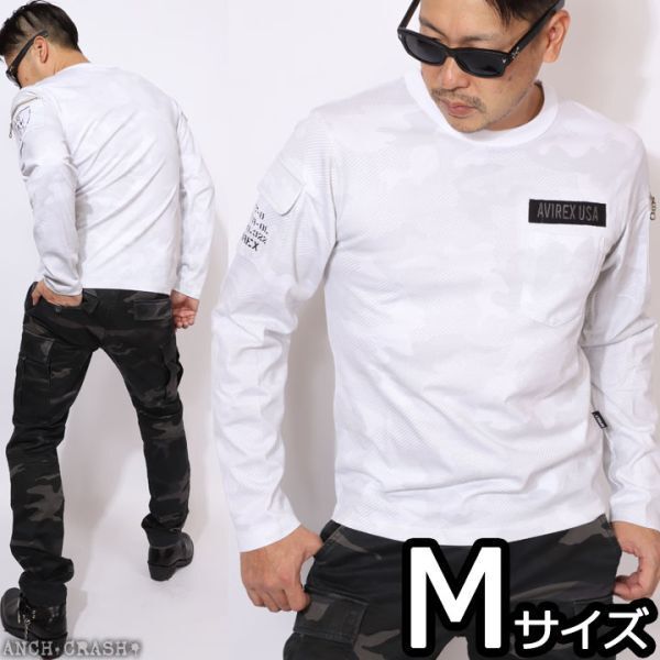 - AVIREX アビレックス ファティーグ 長袖 Tシャツ ホワイトカモ【Mサイズ 】6113448 クルーネック ポケット ミリタリー