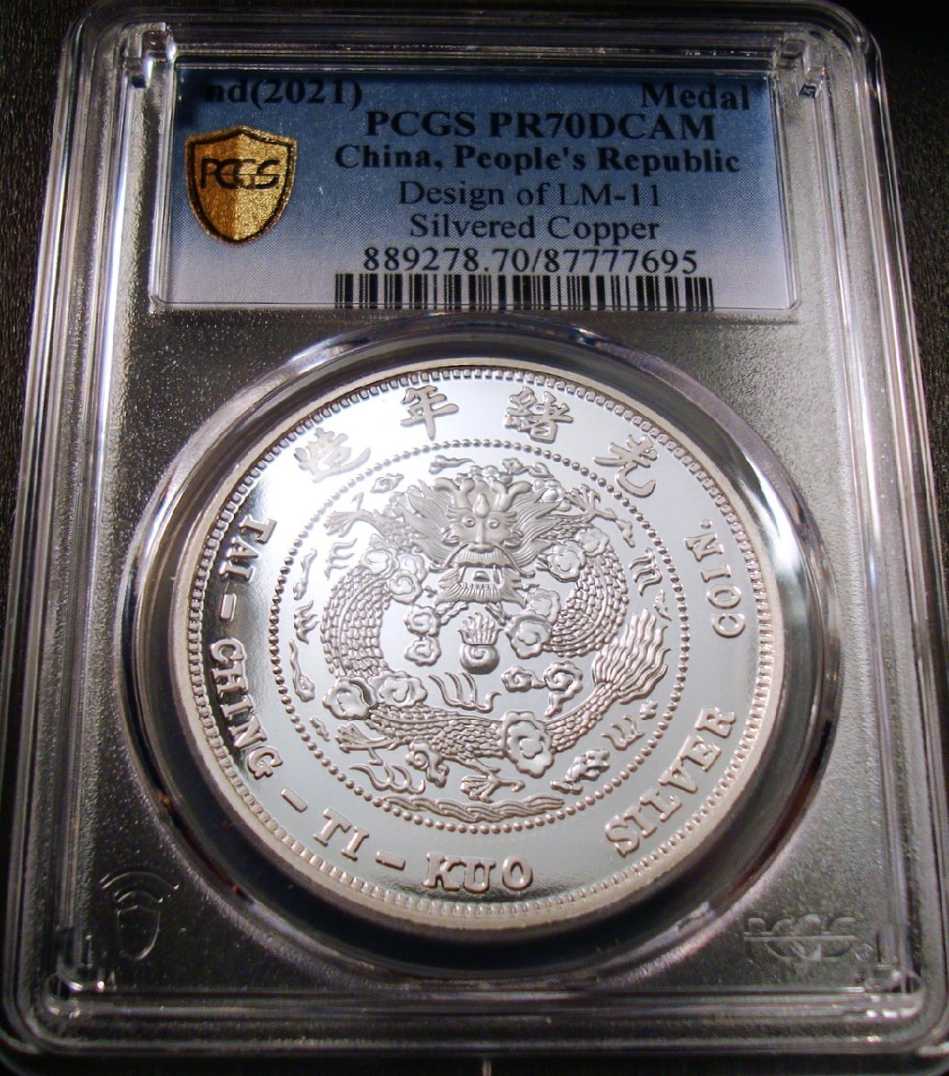 - ●中国 2021年 PCGS PR70DC 造幣總廠 光緒元寶 七銭二分 龍紋 中国古銭復刻版 銀メッキ銅メダル / プルーフ 40mm