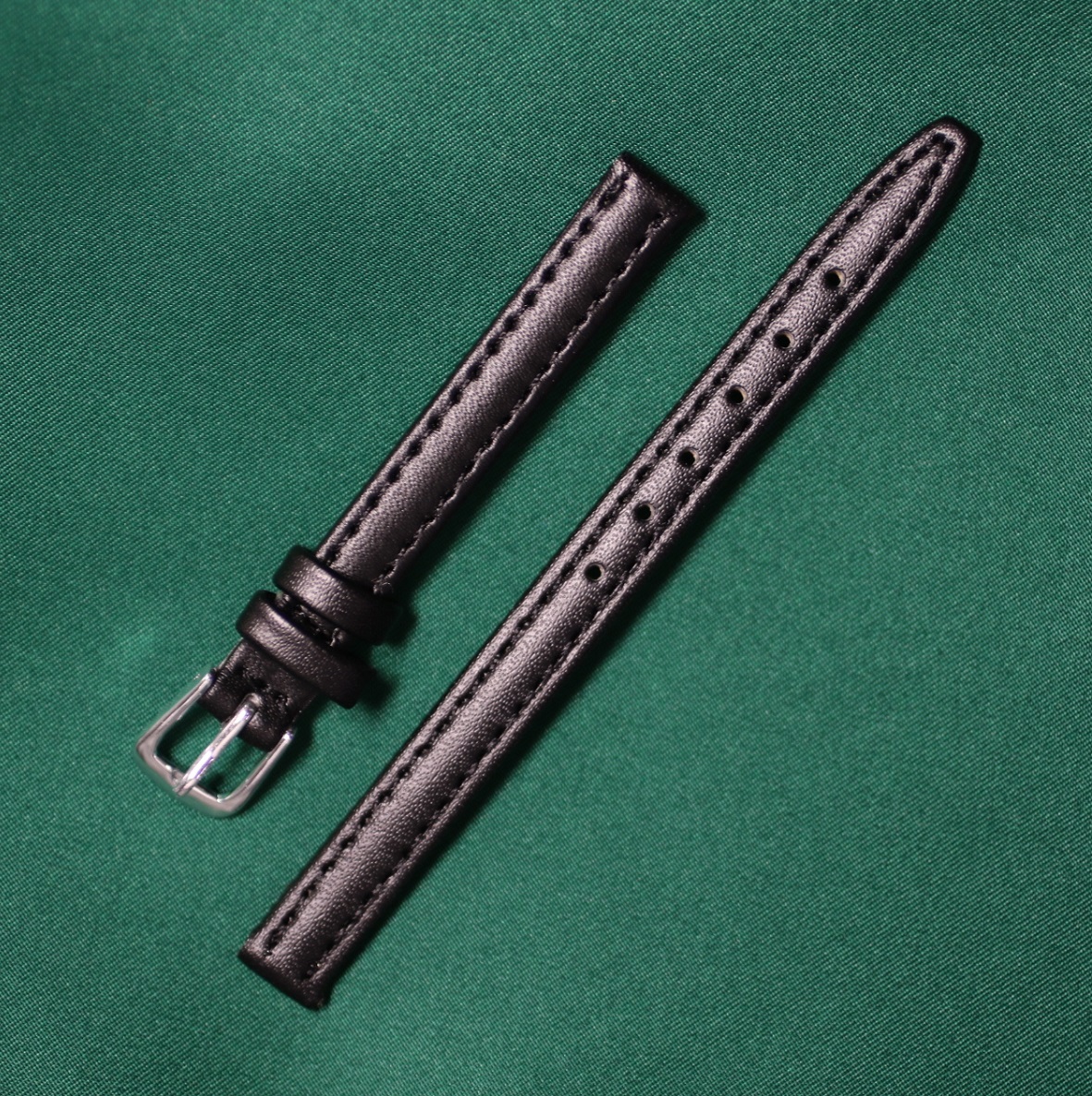 - 8㎜ プレーン 黒 ブラック カーフレザー SS・銀色尾錠 ストラップ バンド 新品