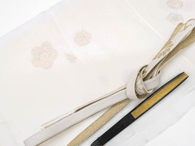 - 《京都一輝堂》リサイクル着物 和装小物 帯揚げ帯締めセット 帯揚 帯締 礼装用 縫取り 高麗組 金糸 末広付 25w09-10756