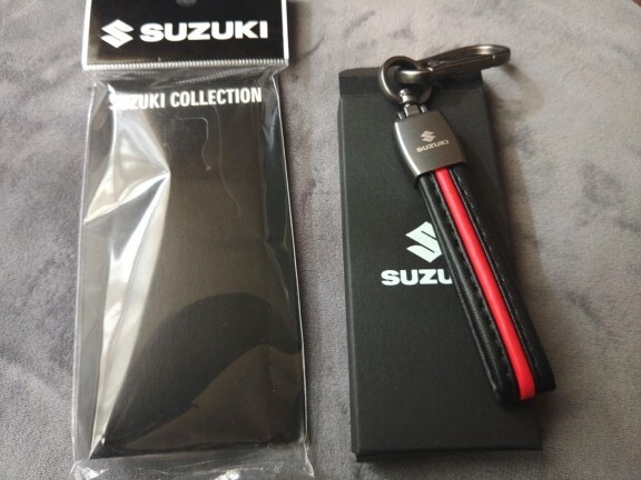 - 新品 純正品 SUZUKI スズキ レザーキーホルダー ループ 赤 スズキ