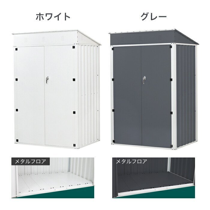 > 訳あり品★ホワイト色物置 幅123×奥行き93×高さ186cm 床材なし 屋外 おしゃれ 倉庫 庭 収納庫 スチール ###訳物置ASS-03白床無BD###