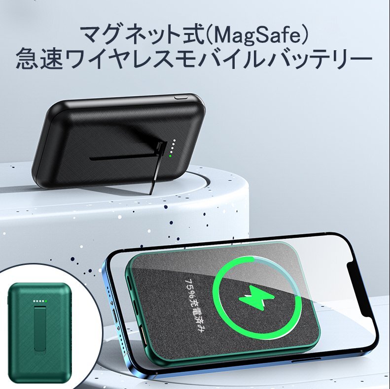 - マグネット式 Magsafe対応 モバイルバッテリー ワイヤレスモバイルバッテリー PSE認証 薄型 コンパクト 急速ワイヤレス15W PD22.5W 1000