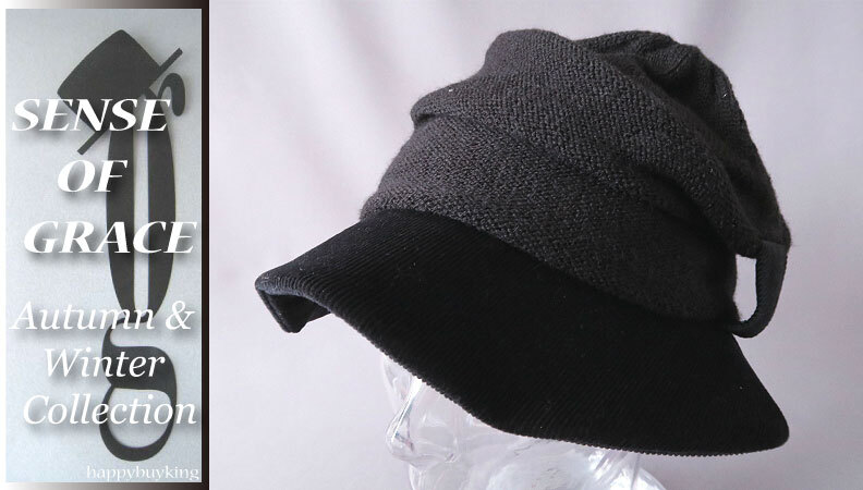 > graceグレース★パイルニットドレープルーズハット【黒】新品 定価¥4500 サイズ調節可能 男女兼用 UV99%CUT ポケッタブル