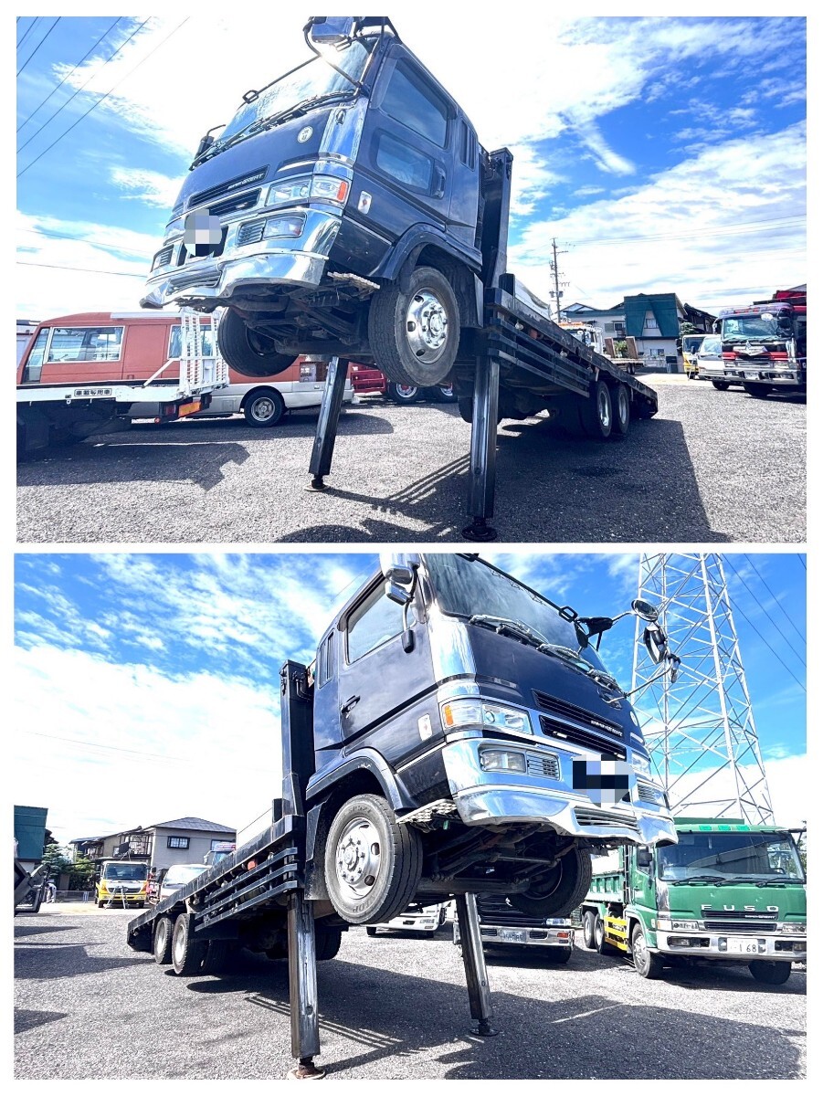 > 三菱 S.グレート セルフローダー ウインチ 3軸低床 V8エンジン 実走行78万キロ 2デフ MT 7速 1円売り切り