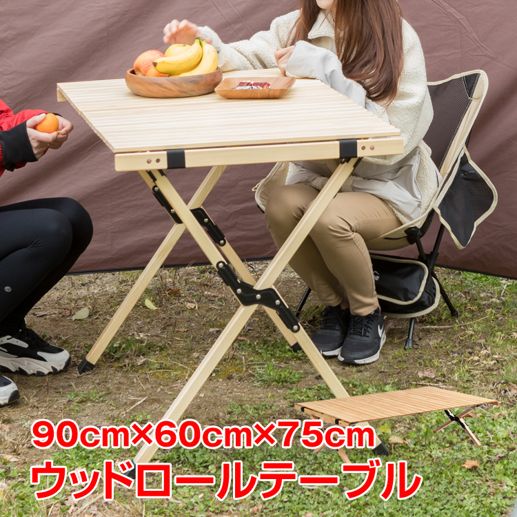 > 【在庫処分セール!】テーブル 折りたたみ レジャー ロール ピクニック 90cm ローテーブル ハイテーブル アウトドア キャンプ od391a-2