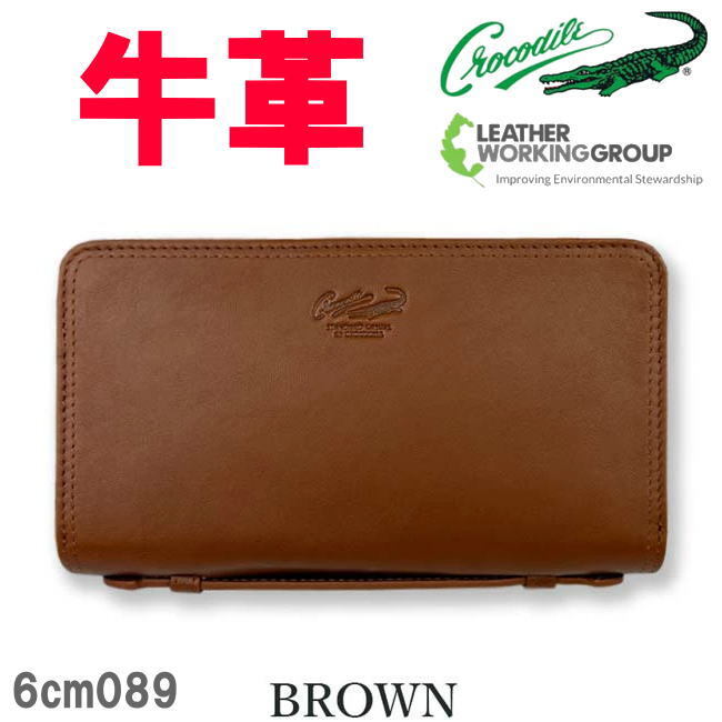 - ブラウン 089 クロコダイル 本革 カウレザー ダブル ラウンド 手付 長財布