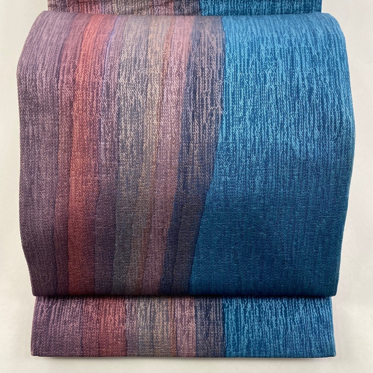 - 【美品】 袋帯 名品 幾何学模様 ぼかし 青緑 全通 正絹 【中古】