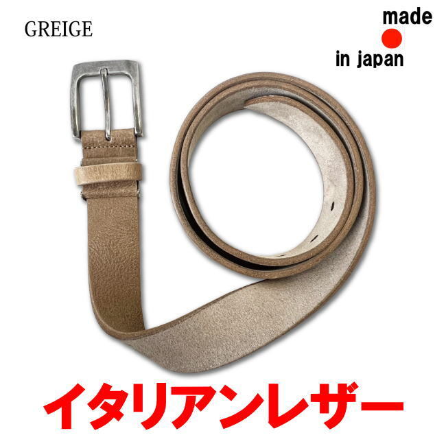 - グレージュ イタリアンレザー 日本製 ベルト 牛革 本革 007
