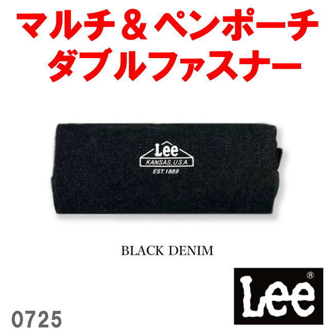 - デニムブラック Lee リー 0725 プリント デニム ダブルファスナー マルチポーチ ペンポーチ
