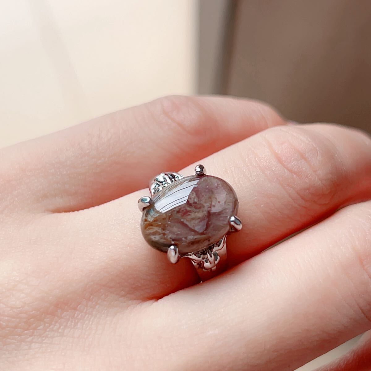 - ◇水草瑪瑙(モスアゲート)◇メノウ◇アゲート◇9号◇リング◇指輪◇天然石◇パワーストーン◇巾着袋付き◇プレゼントにも035R101016