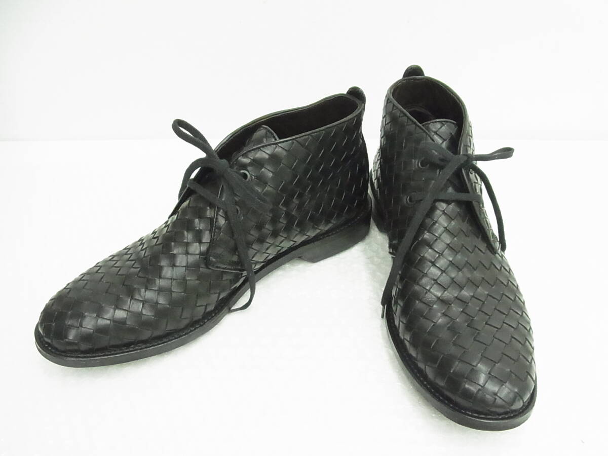 - 1063 ブランド祭 BOTTEGA VENETA ボッテガヴェネタ イントレチャート チャッカブーツ サイズ 40 ブラック 黒 イタリア製 メンズ 紐 靴 中古