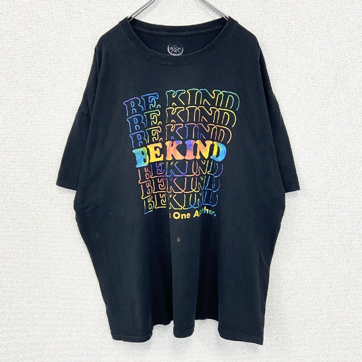 - 古着 used DOM 半袖デザインプリントTシャツ ビッグT BEKIND カラフル クルーネック カジュアル 黒 3XLサイズ