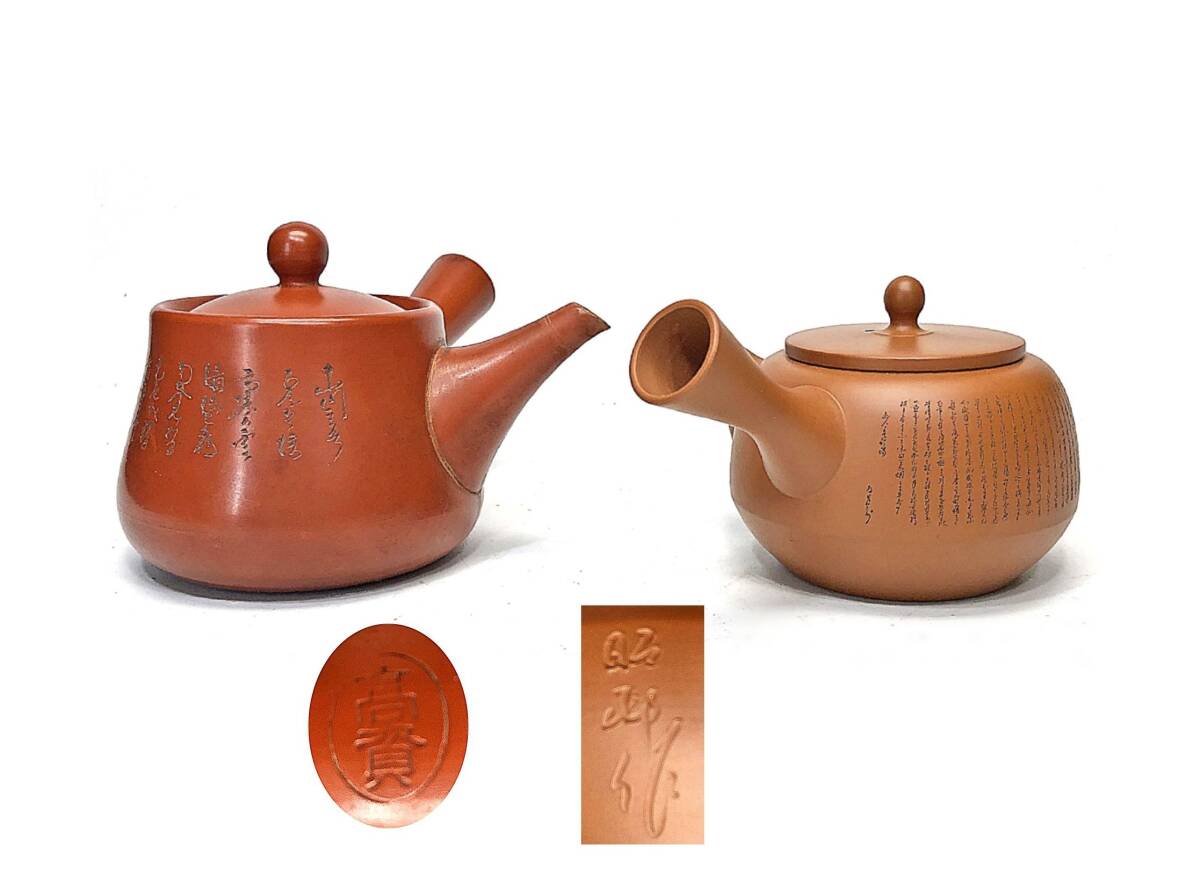 - 常滑朱泥 昭邨作 高資在銘 漢詩彫 横手急須 二品