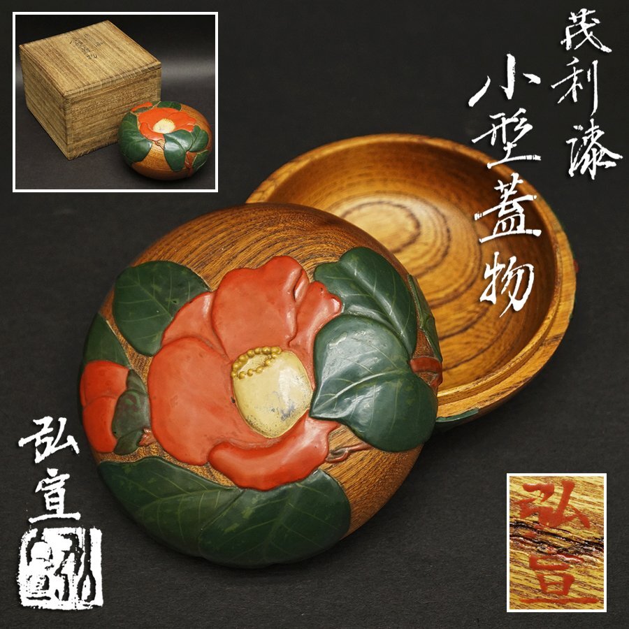- 弘宣造 細工彫 浮彫漆塗 刳り貫き 茶入 小型蓋物 茂利漆 香合 漆芸 欅製 時代 骨董 煎茶道具 茶道具 書道具 古美術品
