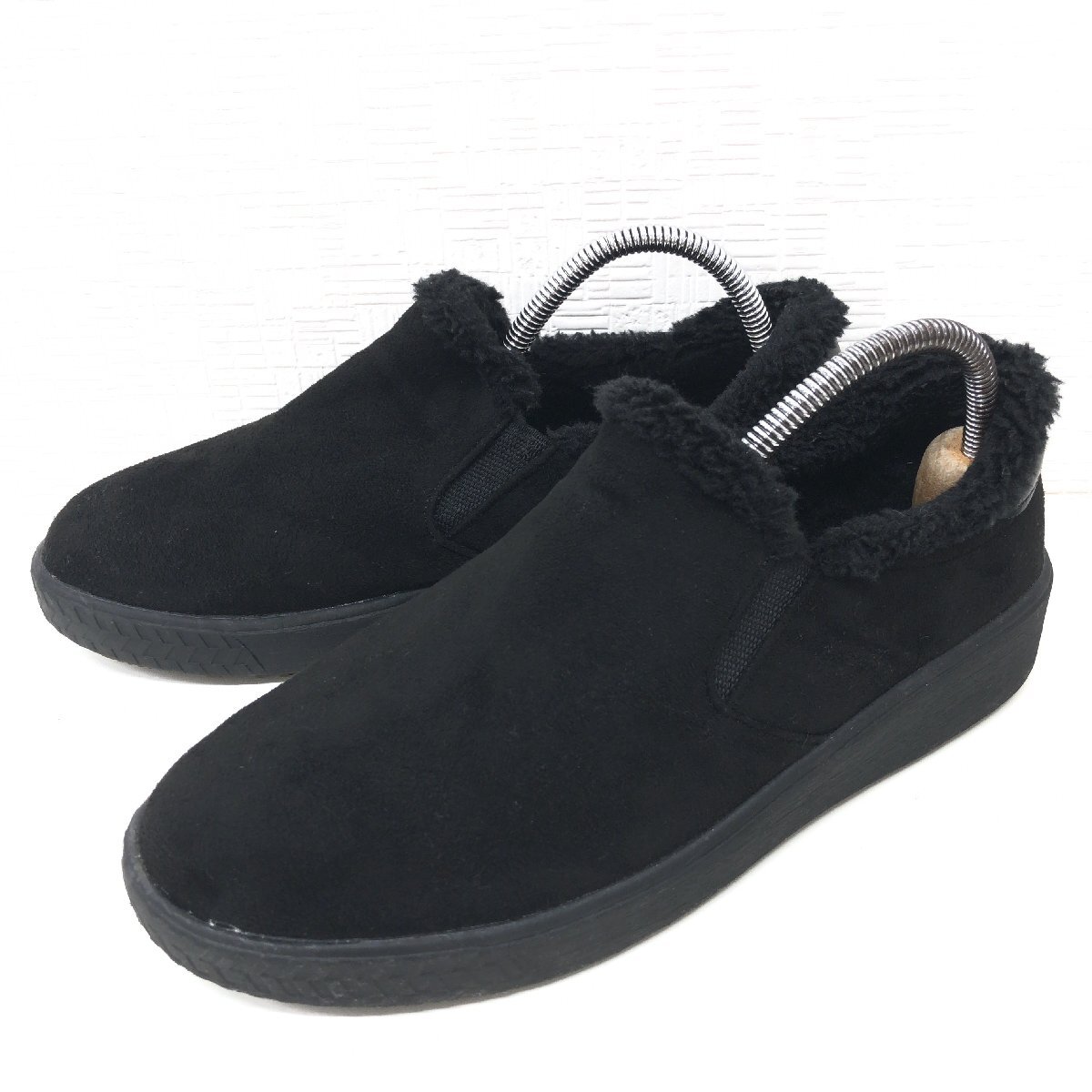- ●Pansy hearts パンジー エコムートン スリッポン 24cm EEE 黒 ボア スニーカー ウォーキングシューズ コンフォート 健康靴 女性用