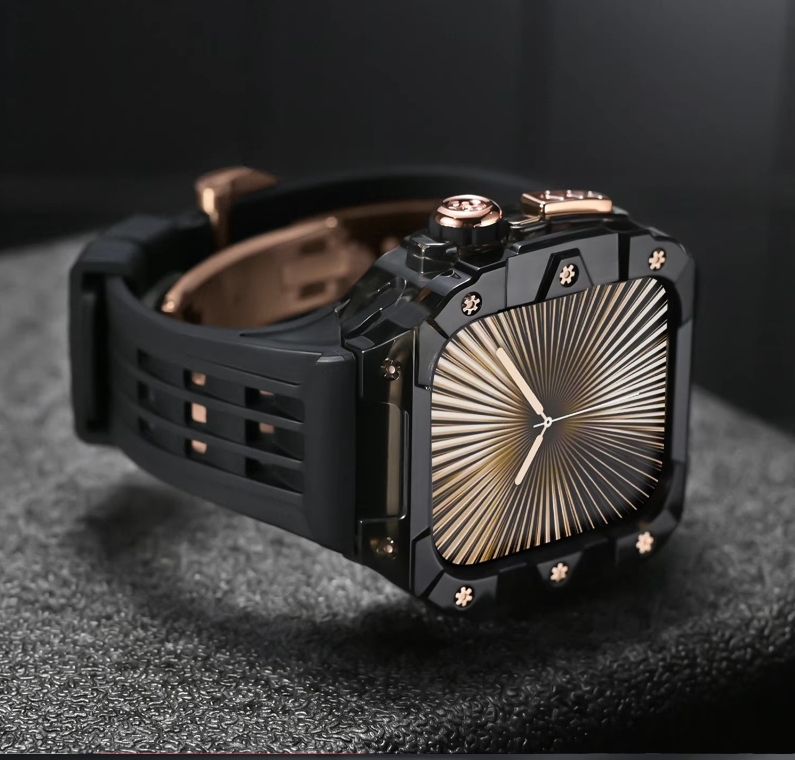 - 【一体型高級アップルウォッチケース 10 46㎜ apple watch】ブラック黒×ゴールド金 限定 時計 ゴールデンコンセプト