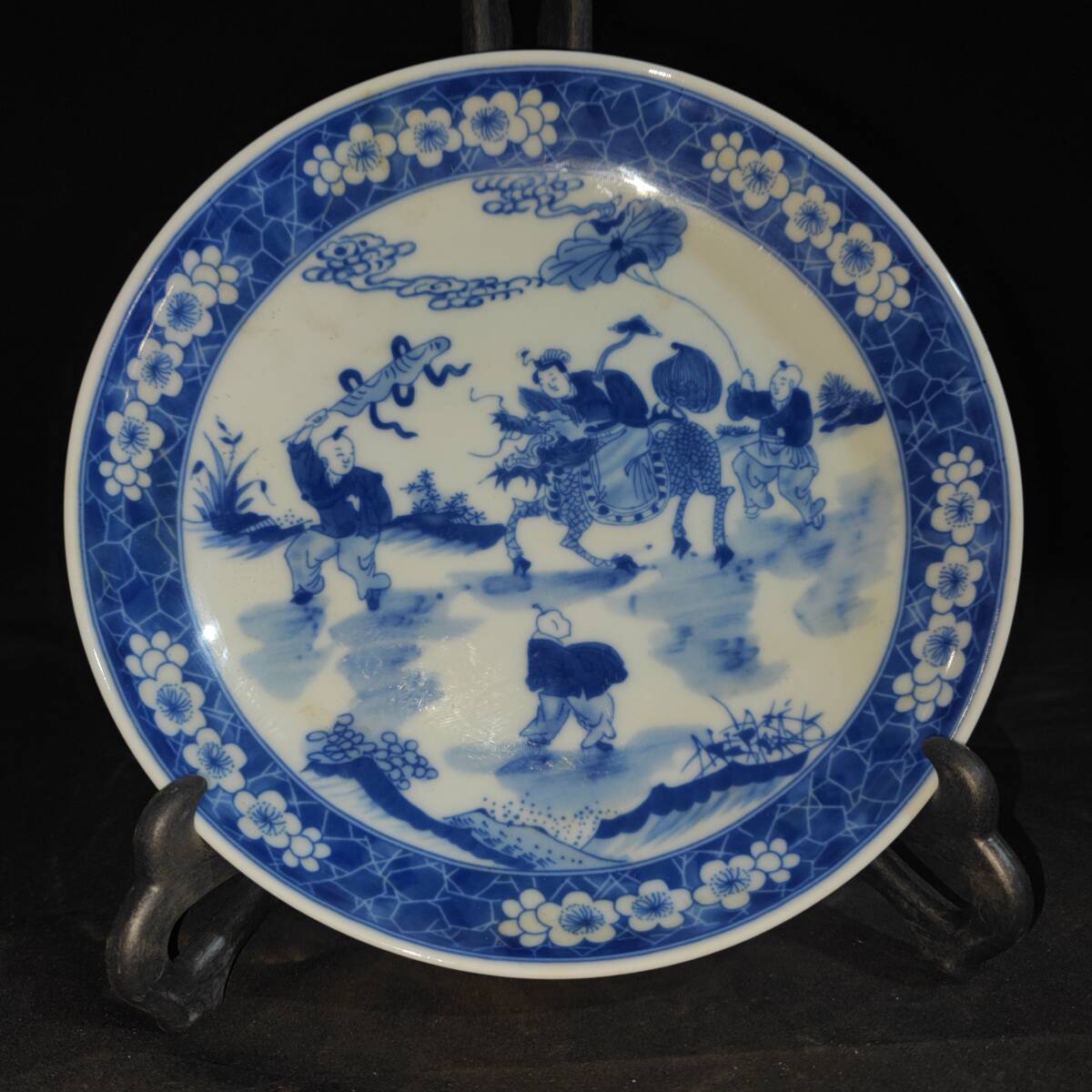 - 【超珍館蔵】清 康熙年制款 古陶瓷品 青花 麒麟送子盤 陶藝 古賞物 古董品 古美術品 時代物 旧家蔵出 稀少珍蔵品