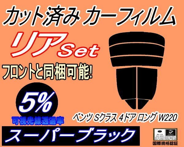 - カーフィルム スーパーブラック カット済み リアセット ベンツ Sクラス 4ドア ロング W220 (s) スモーク 220175 220178 220173 220176