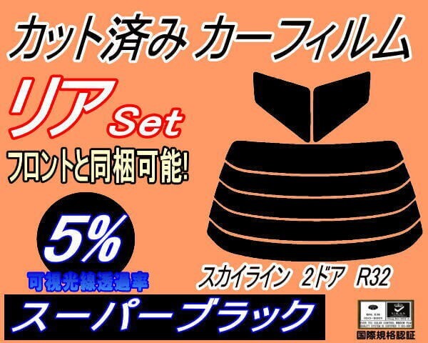 > カーフィルム スーパーブラック カット済み リアセット スカイライン 2ドア R32 (s) スモーク HR32 HNR32 HCR32 BNR32 ECR32 クーペ