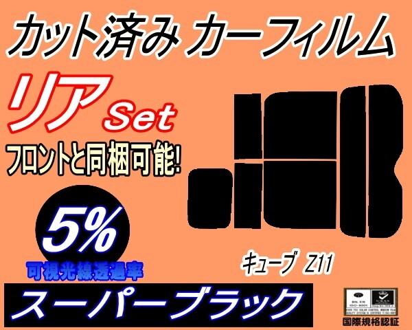 > カーフィルム スーパーブラック カット済み リアセット キューブ Z11 (s) スモーク BZ11 YX11 BNZ11 11系 ニッサン ガラスフィルム