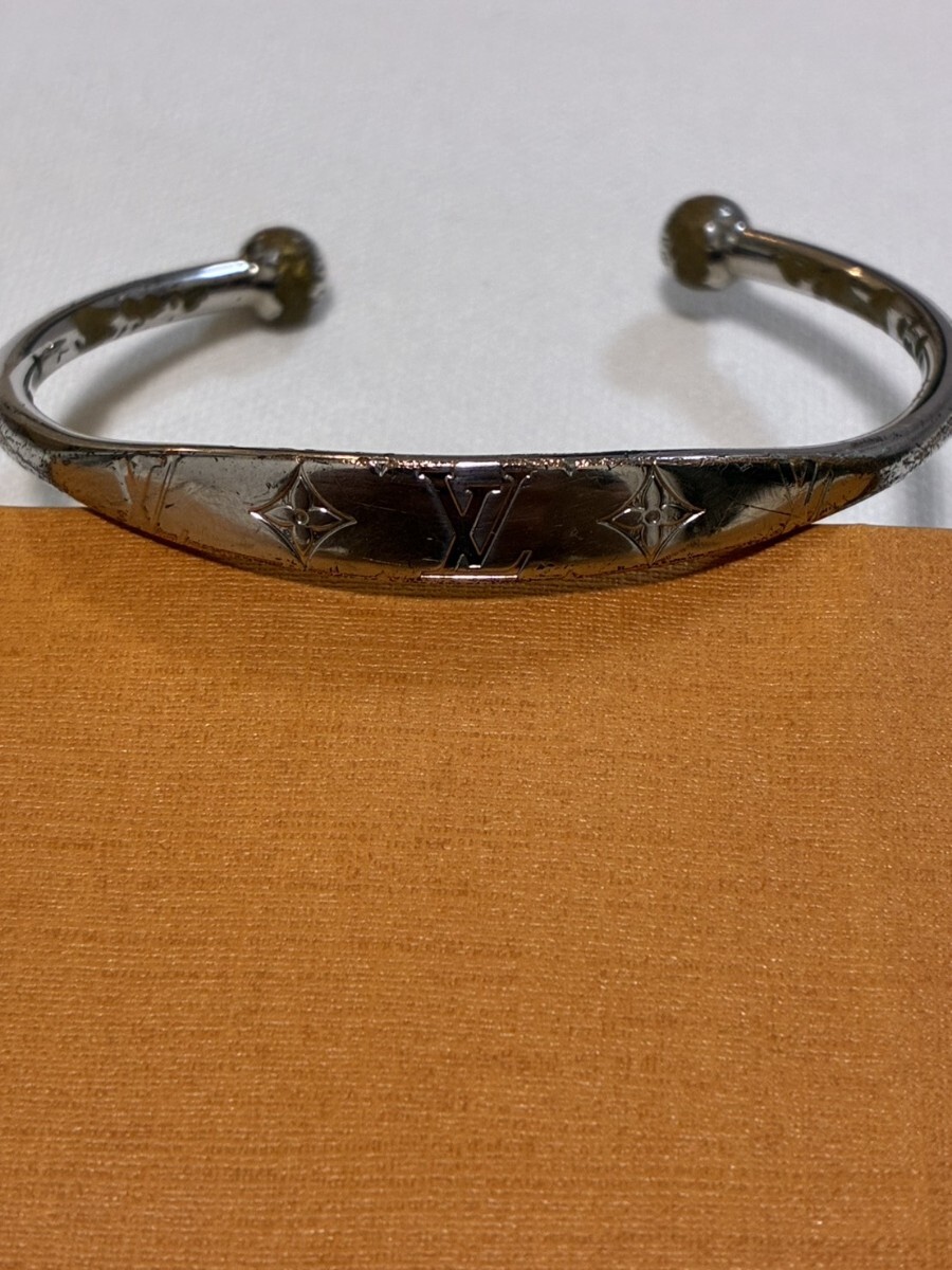 > 1円〜 LouisVuitton ルイヴィトン ジョンクモノグラム バングル ブレスレット メタル Lサイズ M64840 シルバー